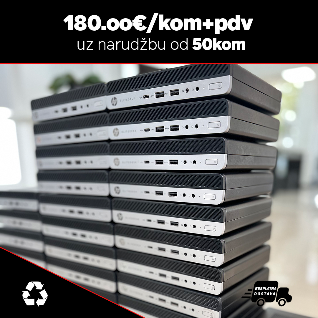 10 x HP Elitedesk 800 G4, Mini PC/Intel Core i5-8500T/8GB DDR4/256GB SSD/HP 90W adapter/Windows 11 Pro 2.000,00 bez PDV-a 2.500,00 sa PDV-om