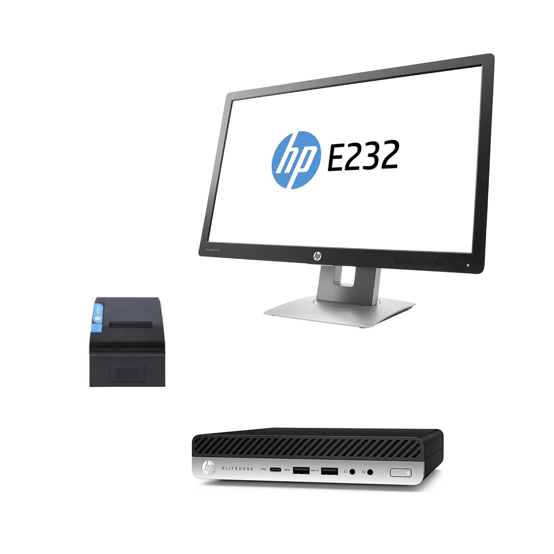 POS start paket – HP Elitedesk 800 G4, Mini PC/Intel Core i5-8500T/8GB DDR4/256GB SSD/HP 90W adapter/Windows 11 Pro + Monitor HP E232 + Pos + Tipkovnica i miš